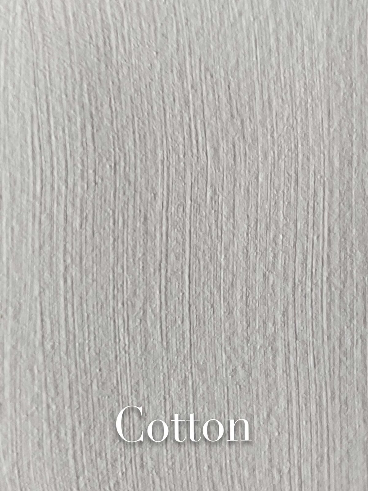 Cotton is an elegant off-white shade with a subtle touch of blue pigments, giving it a cool, crisp undertone. This delicate hint sets it apart from warmer whites, adding a fresh, clean feel to any space. With its refined coolness, Cotton combines the versatility of off-white with a modern, airy vibe, making it a perfect choice for a variety of interiors.